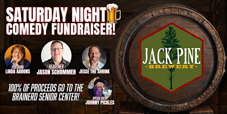A night of laughs for a good cause as some of the Twin Cities' funniest standup comedians raise money for the Brainerd Senior Center! Join us at Jack Pine Brewery on Saturday, October 11 · 8 - 9:30pm CDT