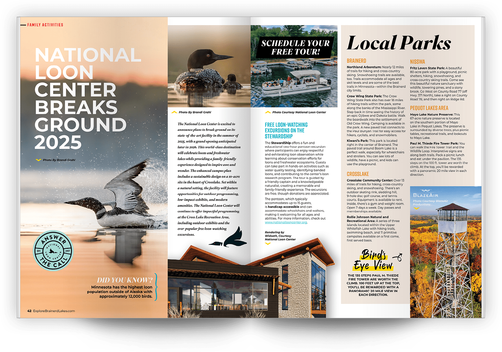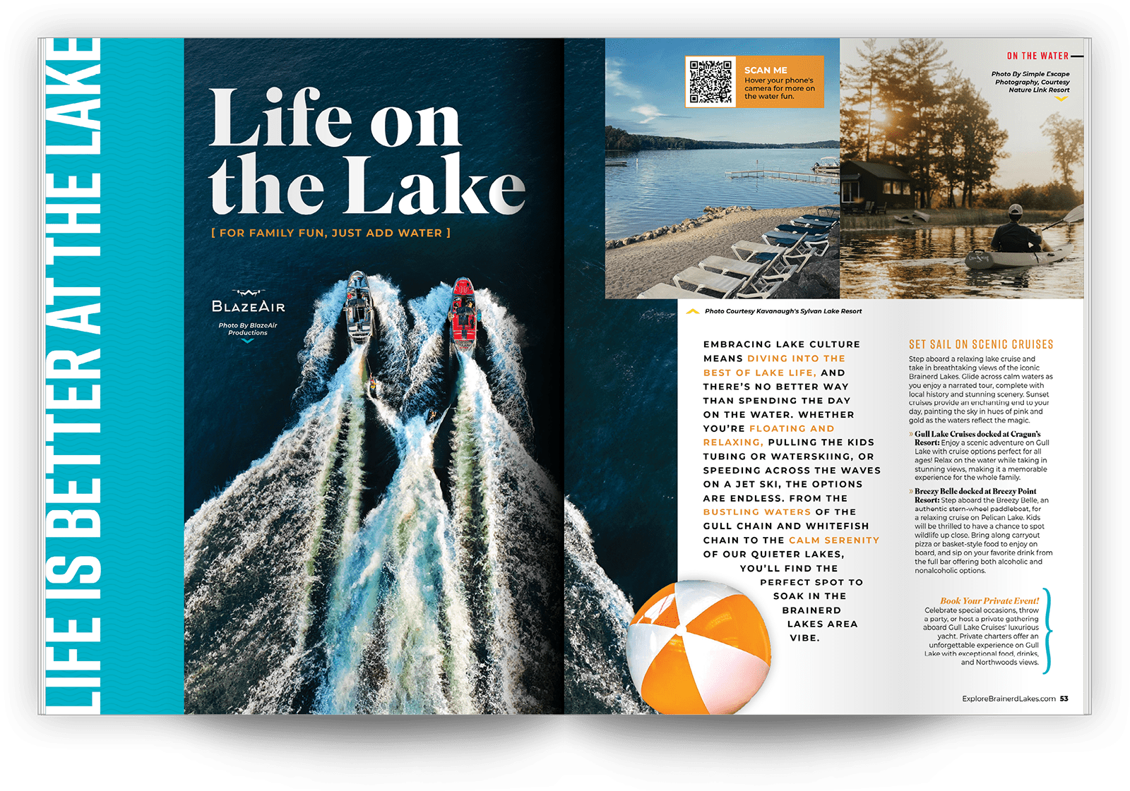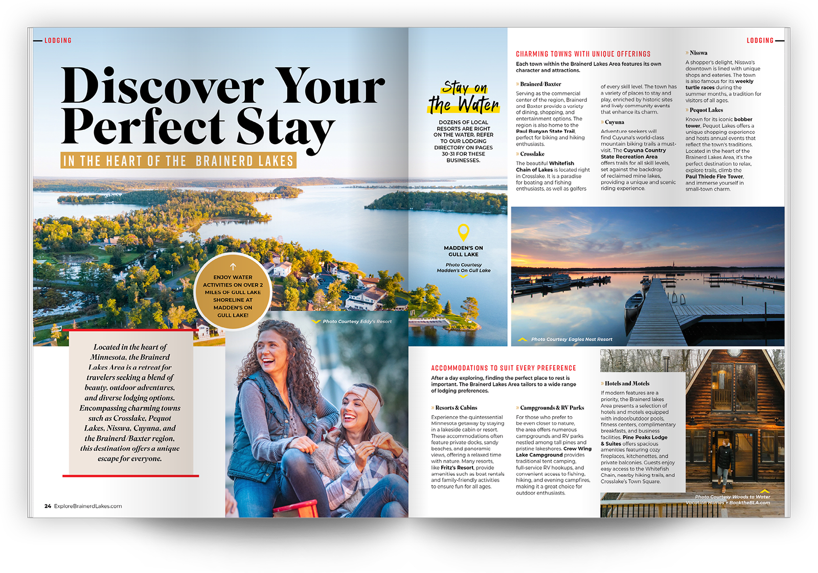 The annual Explore Brainerd Lakes Visitor Guide is widely recognized as the go-to resource for tourists exploring the region. But it’s not just for visitors—locals rely on it too, whether they’re searching for restaurants, contractors, activities, or more. Our guide offers the most comprehensive showcase of local businesses in the area.